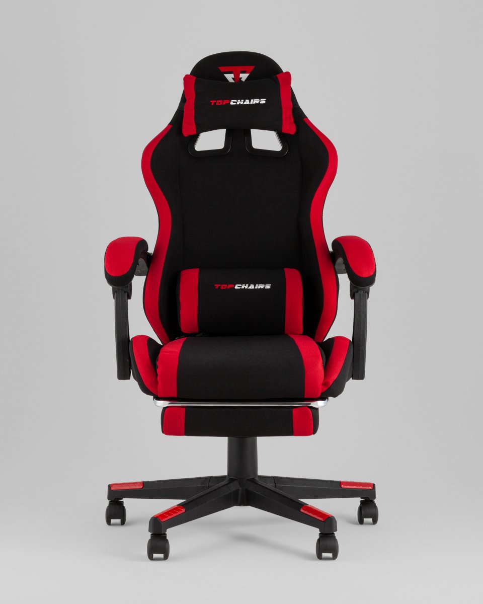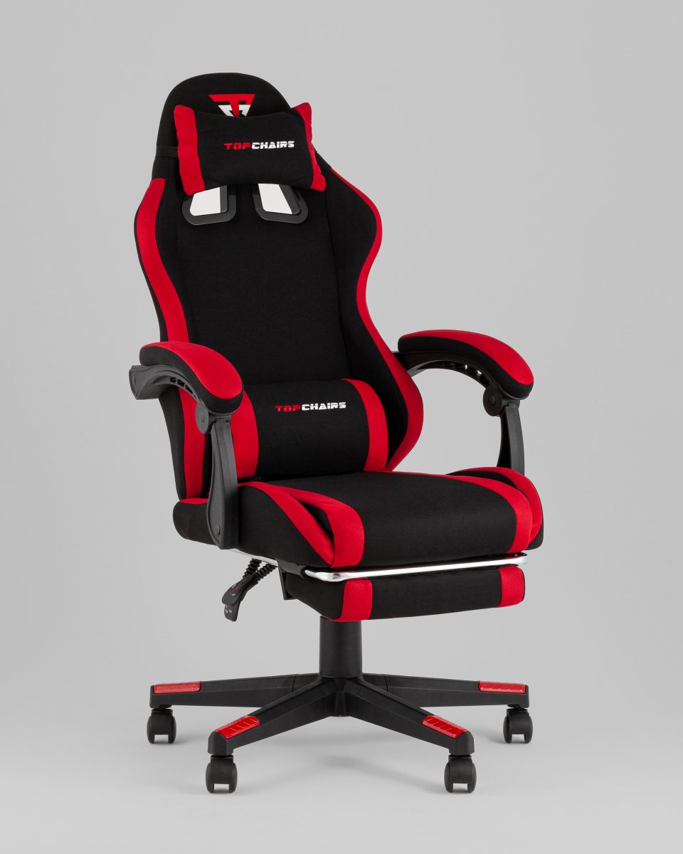 Кресло спортивное TopChairs Prophet с оттоманкой ткань черно-красный