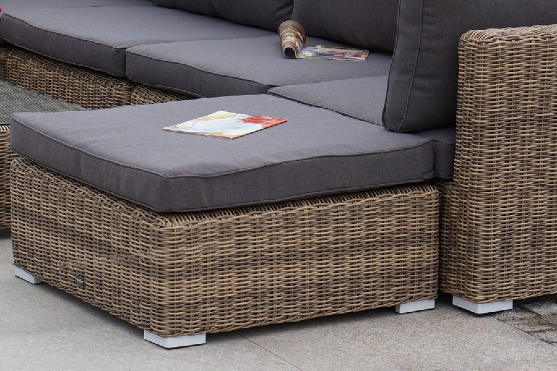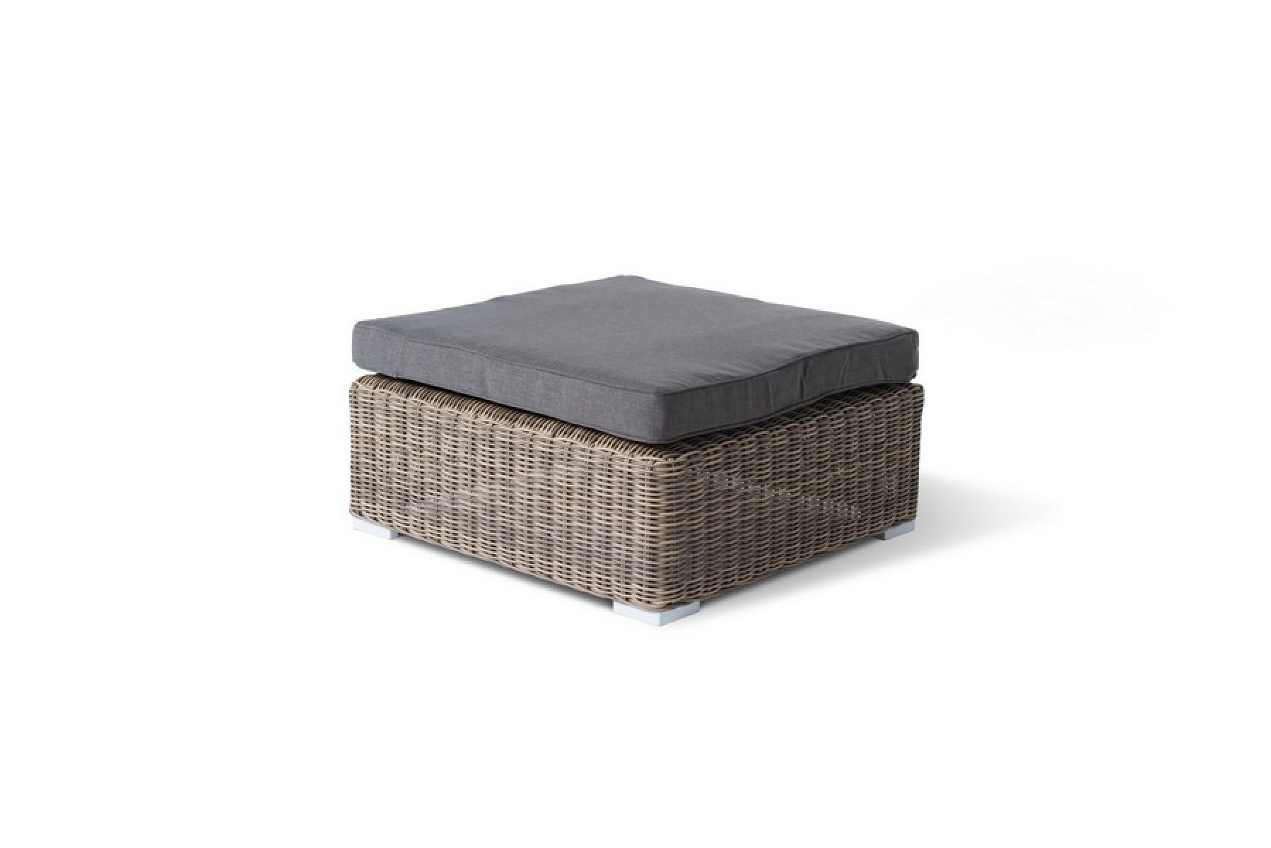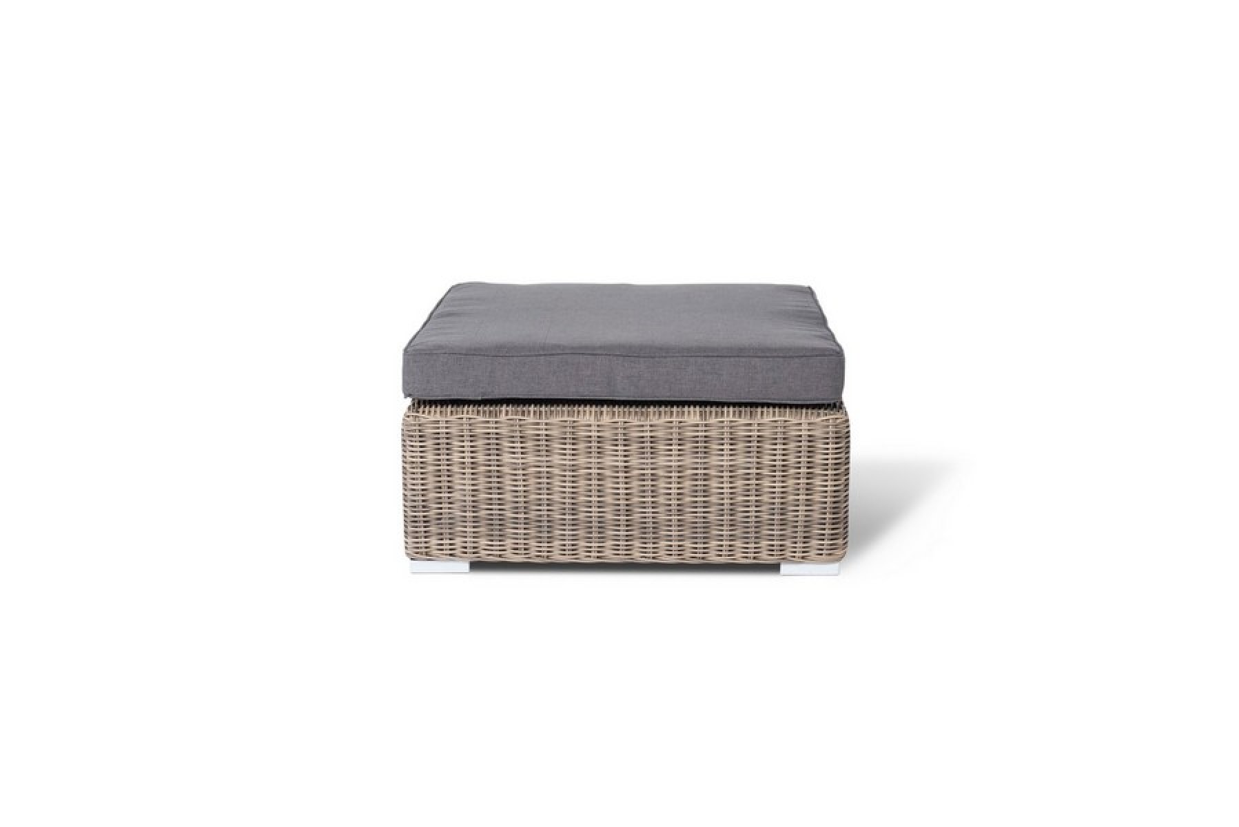 "Лунго", плетеная оттоманка в комплекте с подушкой, алюминиевый каркас, искусственный ротанг, ручное круглое плетение, размер 730х730х330 мм, цвет соломенный