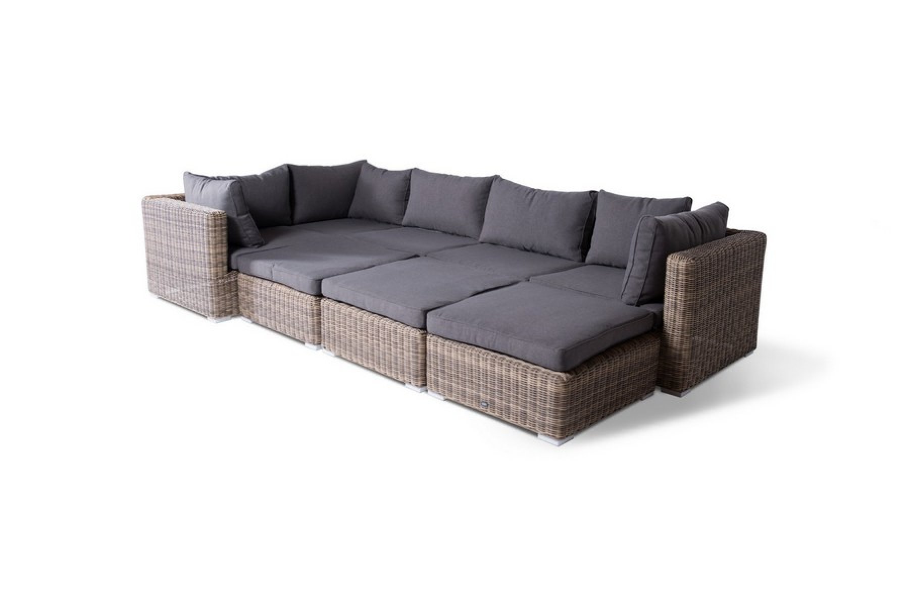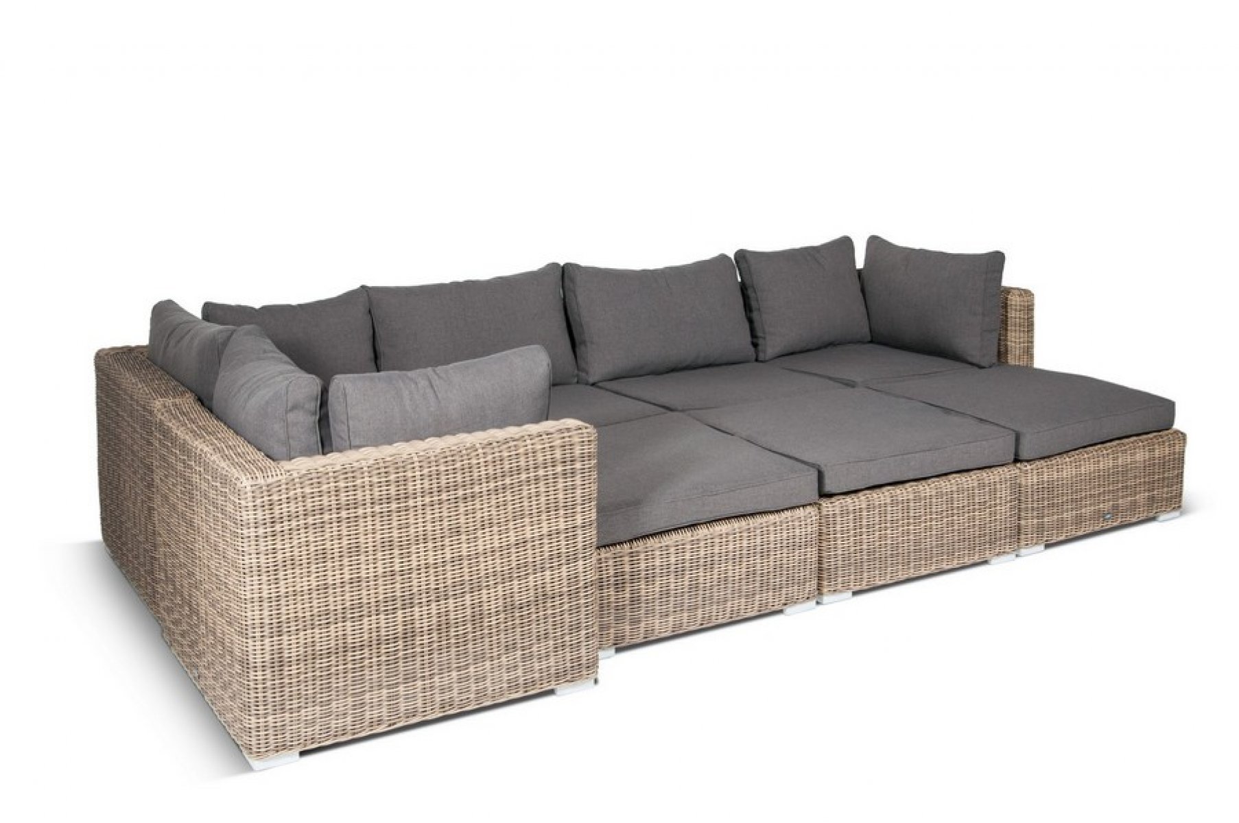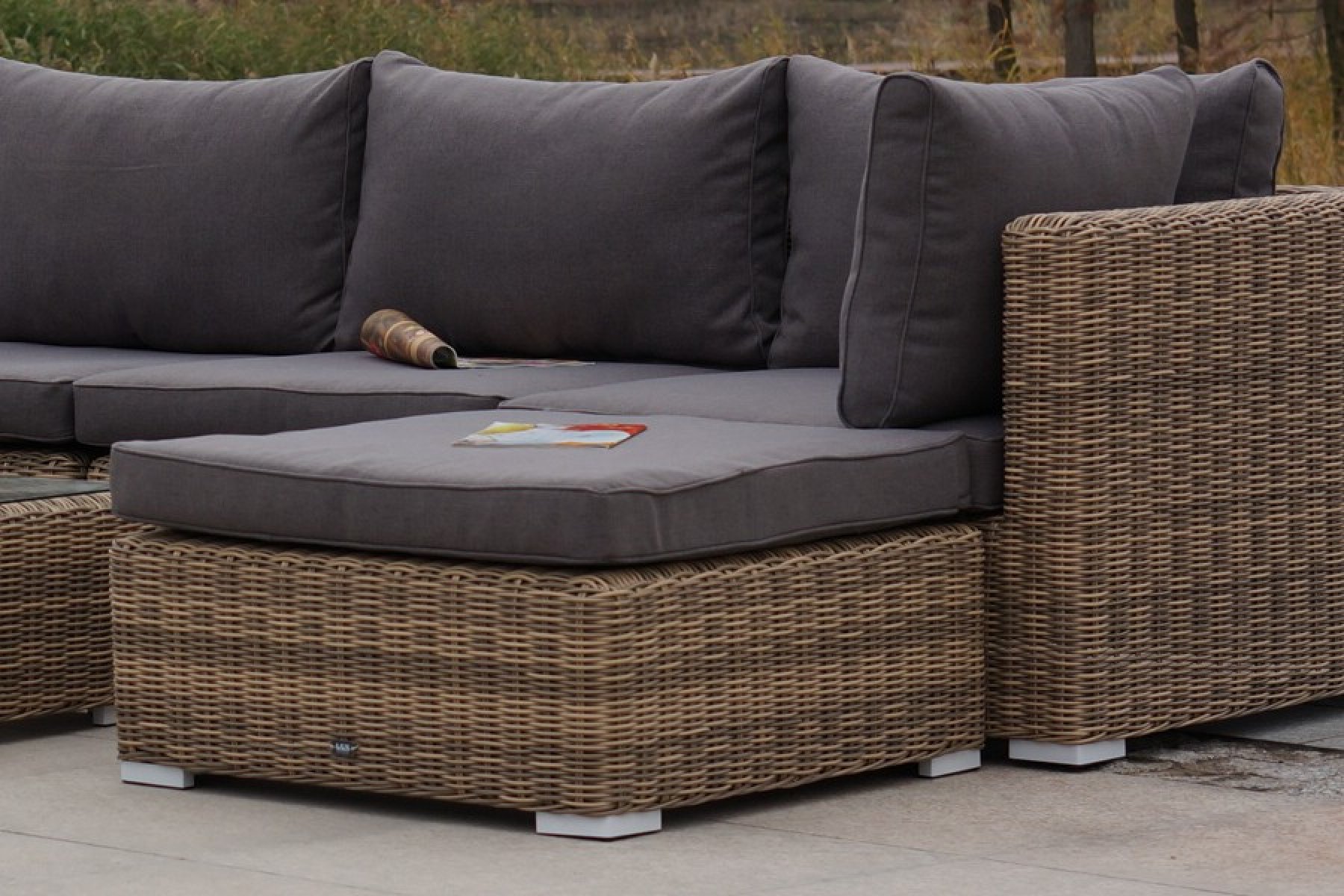 "Лунго", плетеная оттоманка в комплекте с подушкой, алюминиевый каркас, искусственный ротанг, ручное круглое плетение, размер 730х730х330 мм, цвет соломенный
