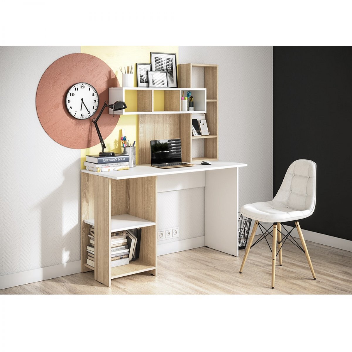 Стол компьютерный Олимп, дуб сонома/белый
