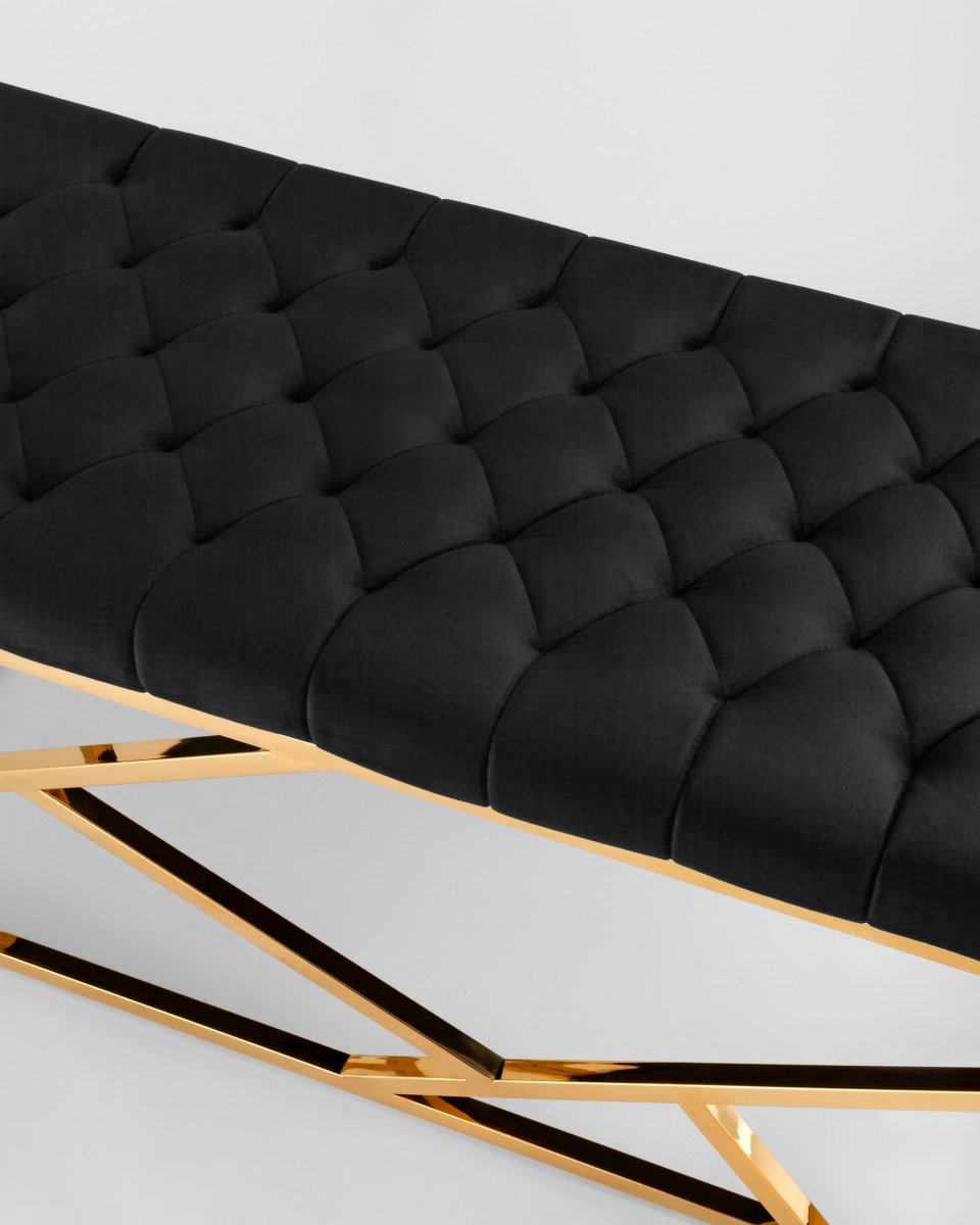 Банкетка-скамейка АРТ ДЕКО велюр черный сталь золото