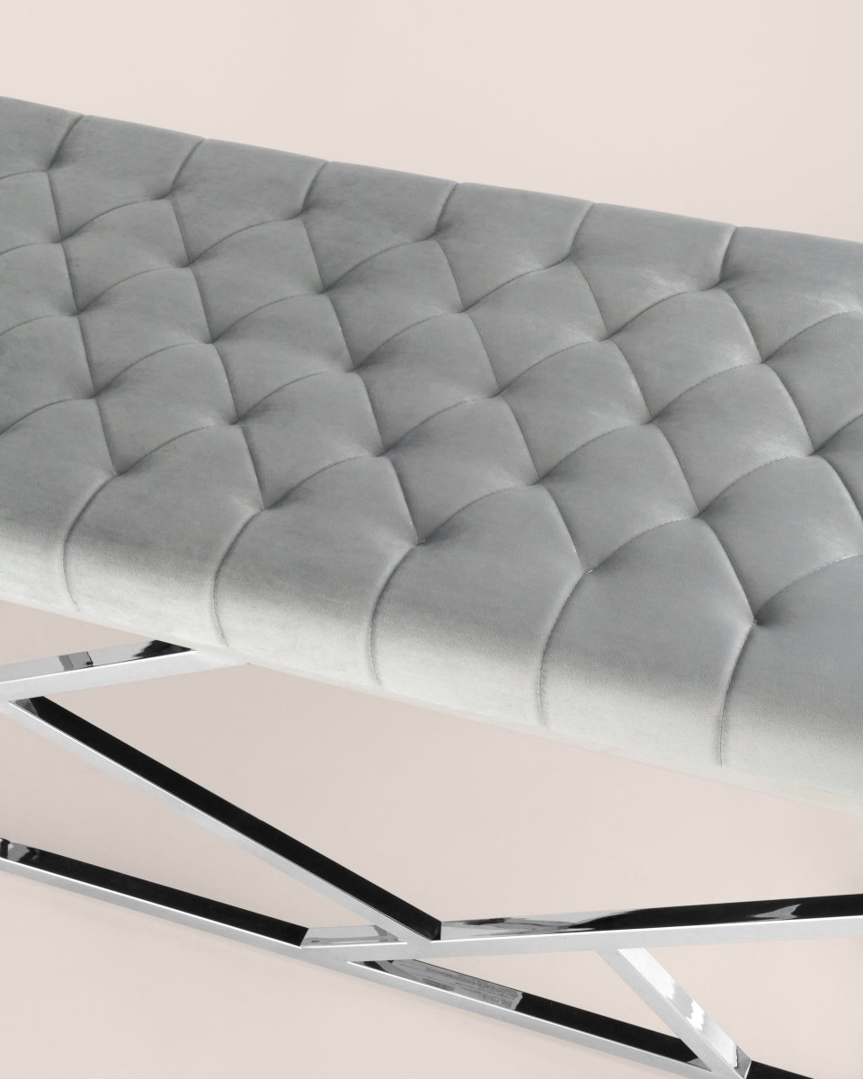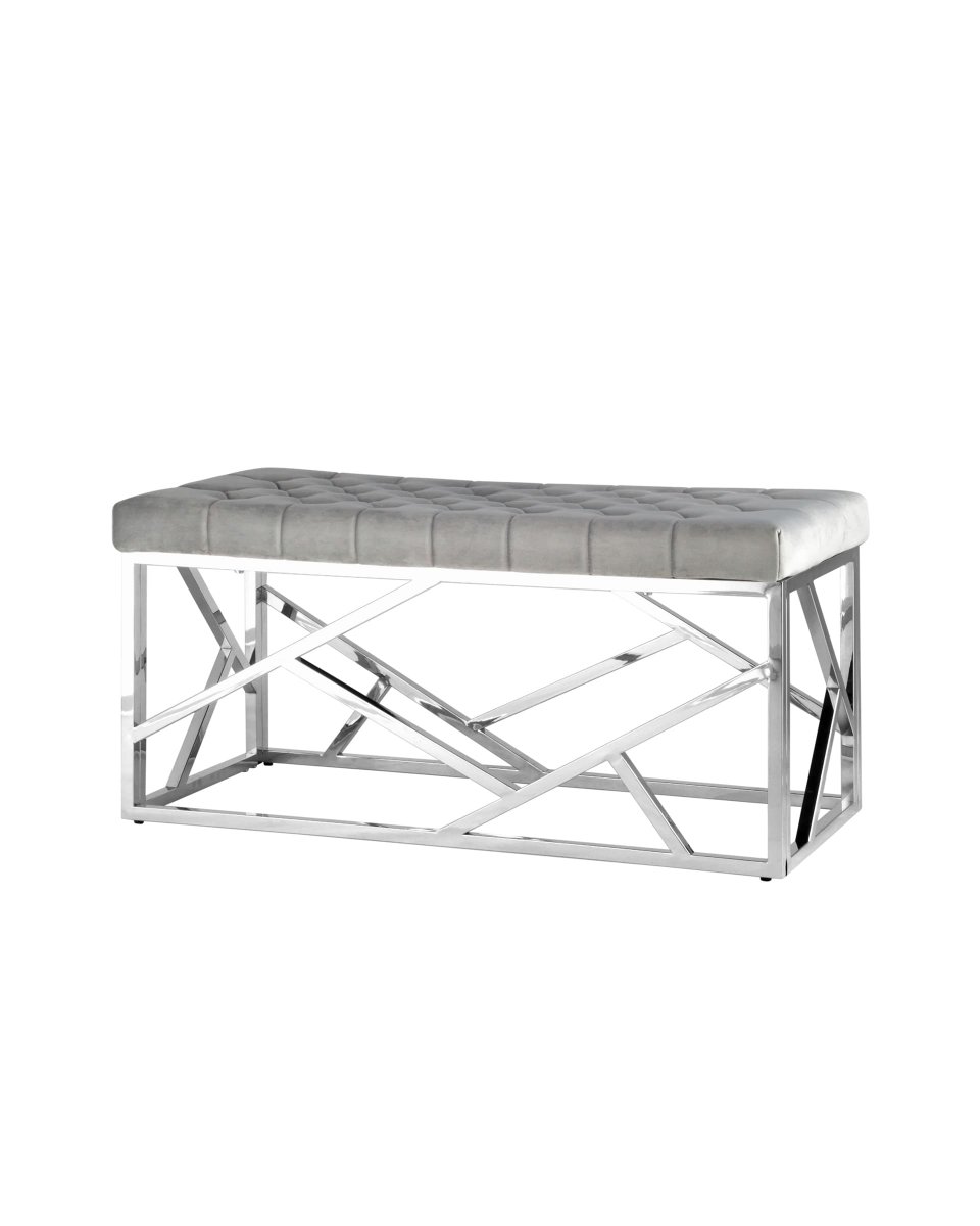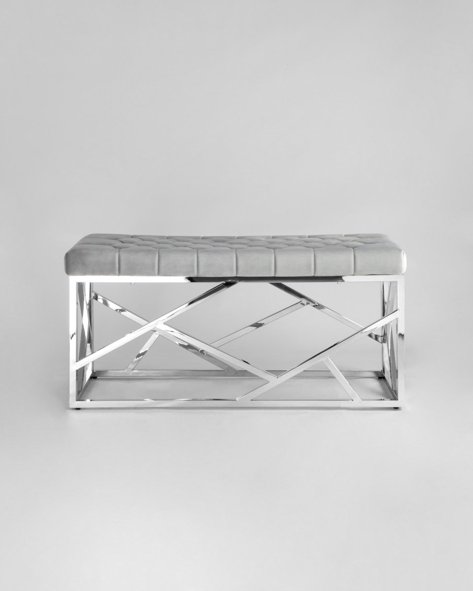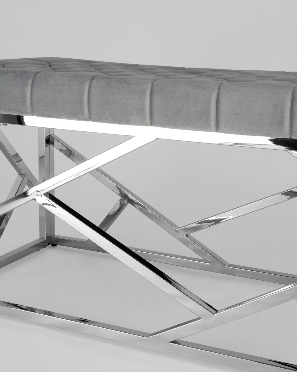 Банкетка-скамейка АРТ ДЕКО велюр серый сталь серебро
