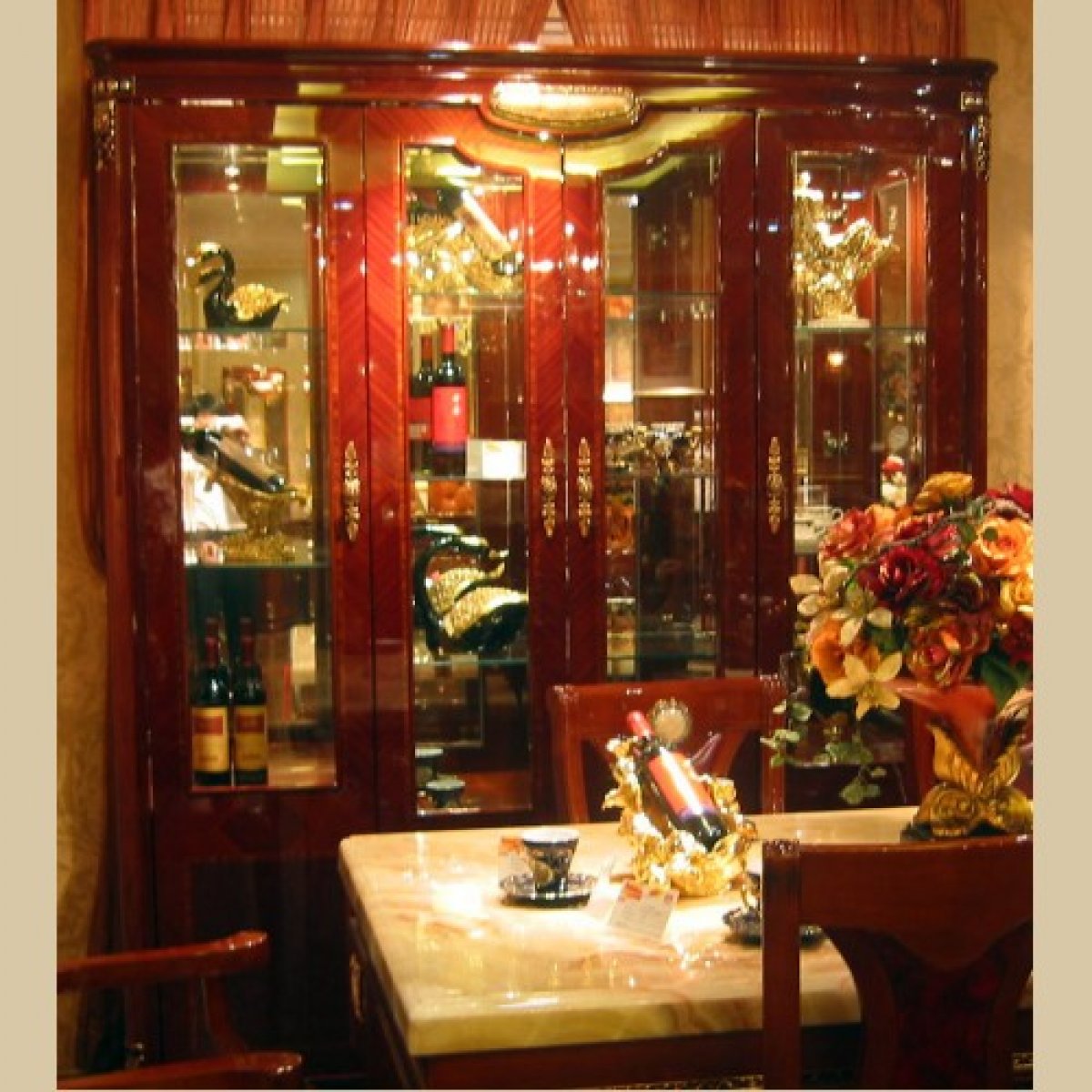 Эксклюзивная мебель из натурального дерева, декоративные элементы с золотым 24-каратным гальваническим покрытием, украшены вставками из натурального камня и стразами "Сваровски".