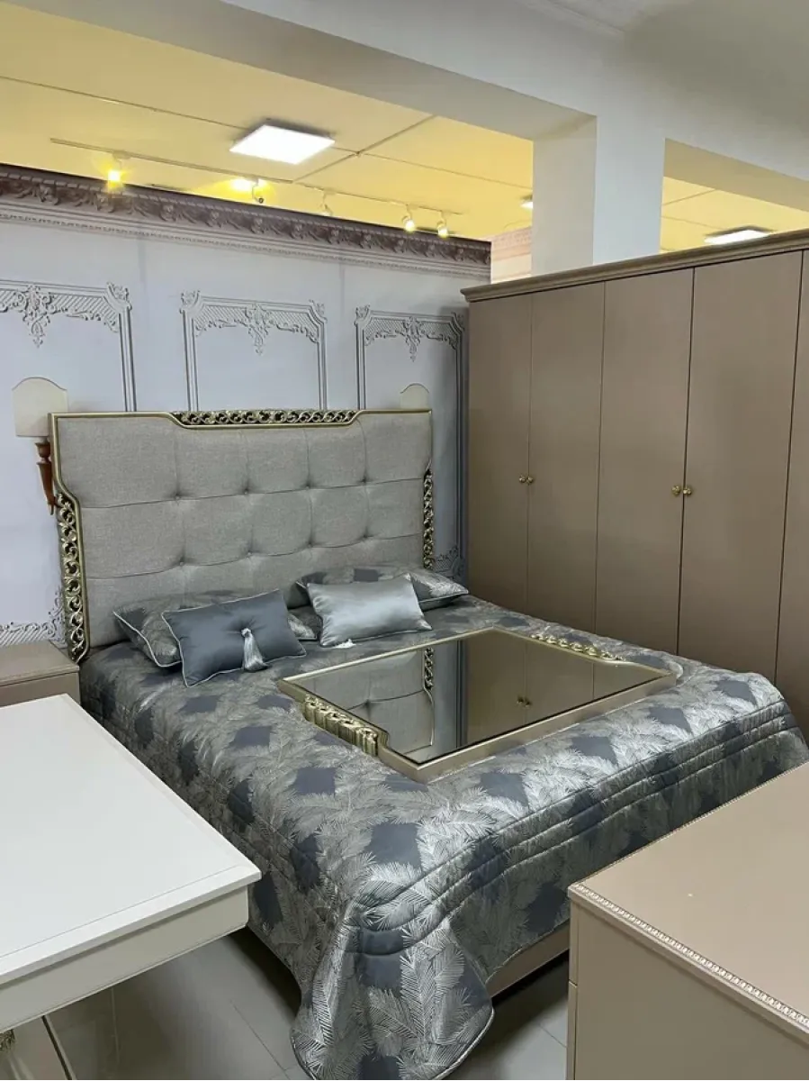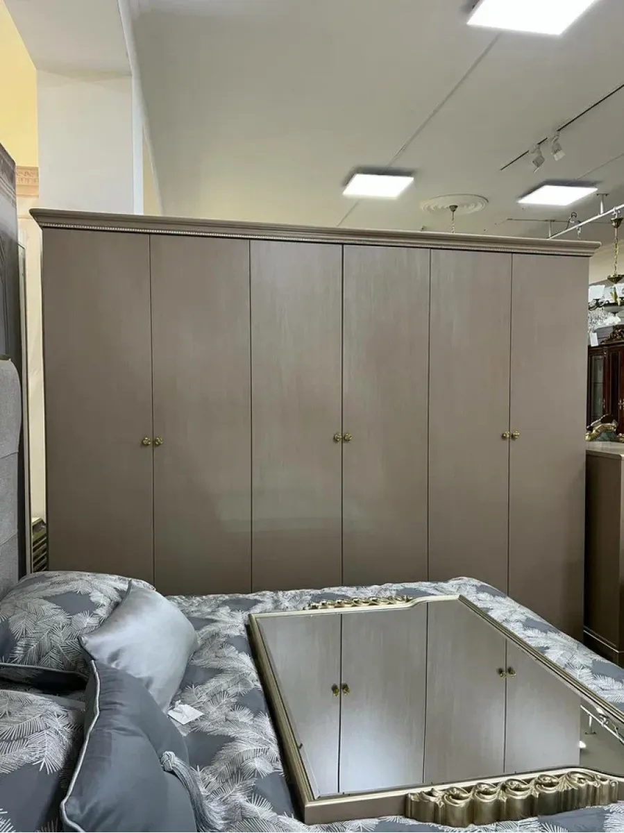 ЛАУРА Комплект (Кровать 1,8 + 2 Тумбочки + Туалетный стол + Пуф + 6-ти дв. шкаф)