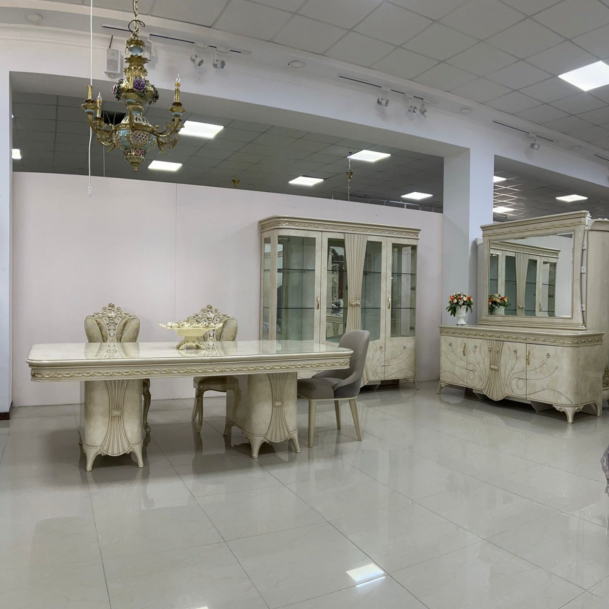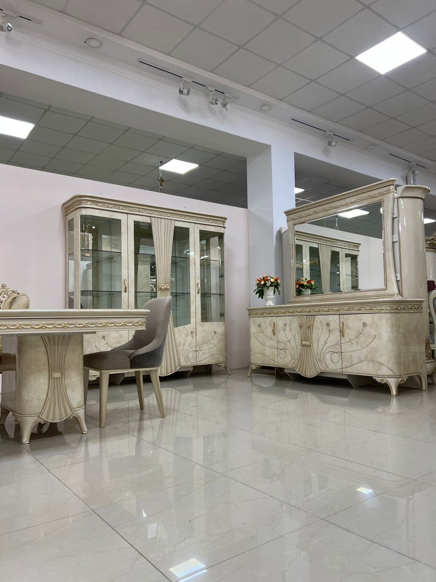 МАГНОЛИЯ Комплект гостиной (Витрина, Комод, Стол, 4 стула, 2 кресла)