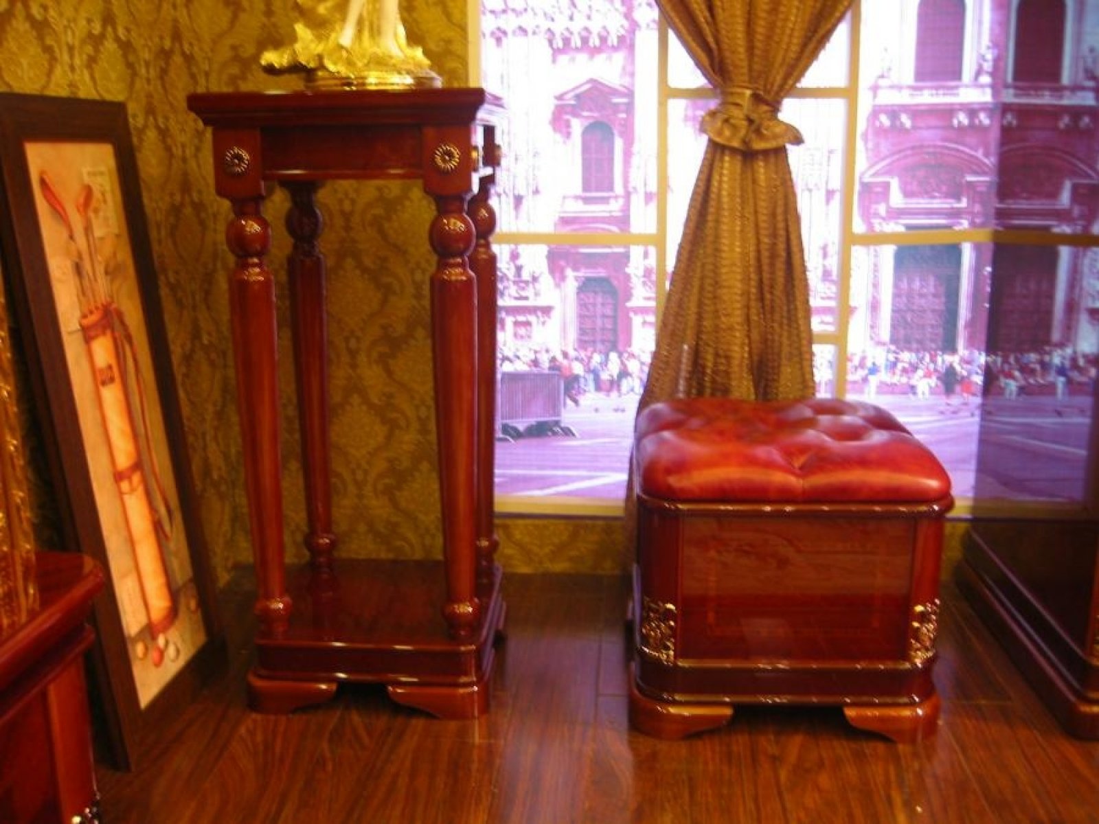 Эксклюзивная мебель из натурального дерева, декоративные элементы с золотым 24-каратным гальваническим покрытием, украшены вставками из натурального камня и стразами "Сваровски".