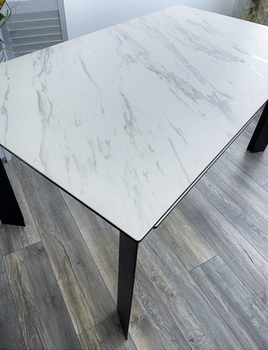 Стол CREMONA 160 KL-99 Белый мрамор матовый, итальянская керамика / черный каркас М-City