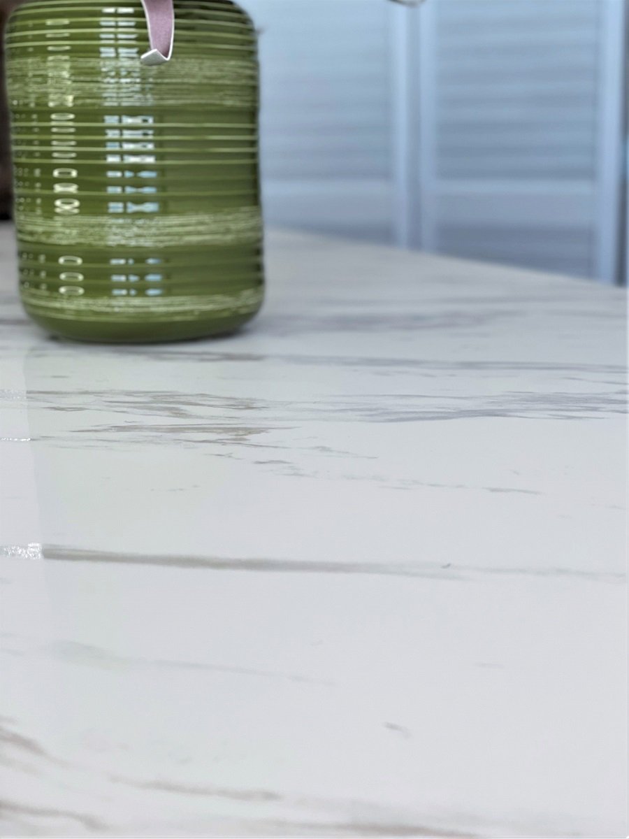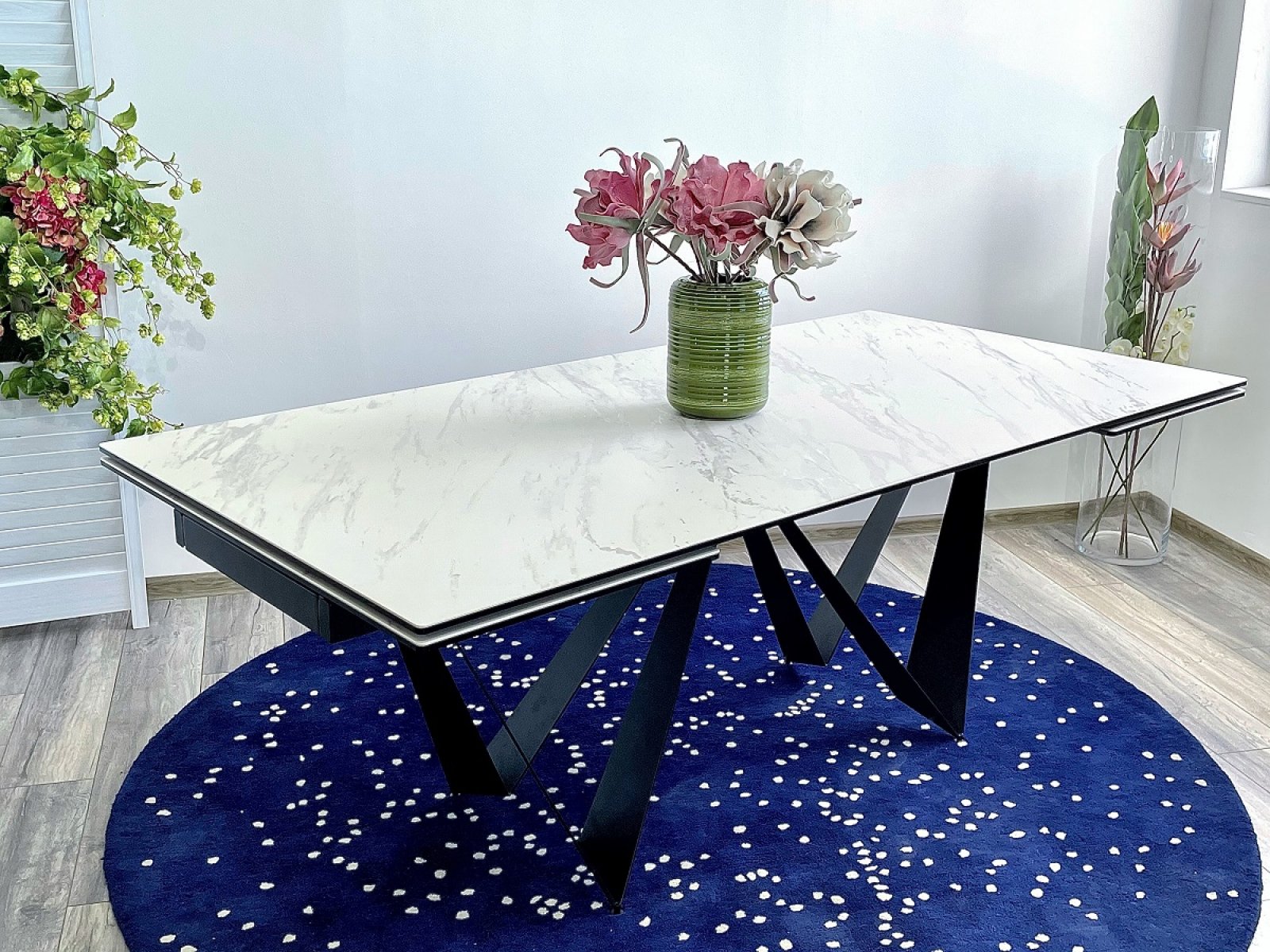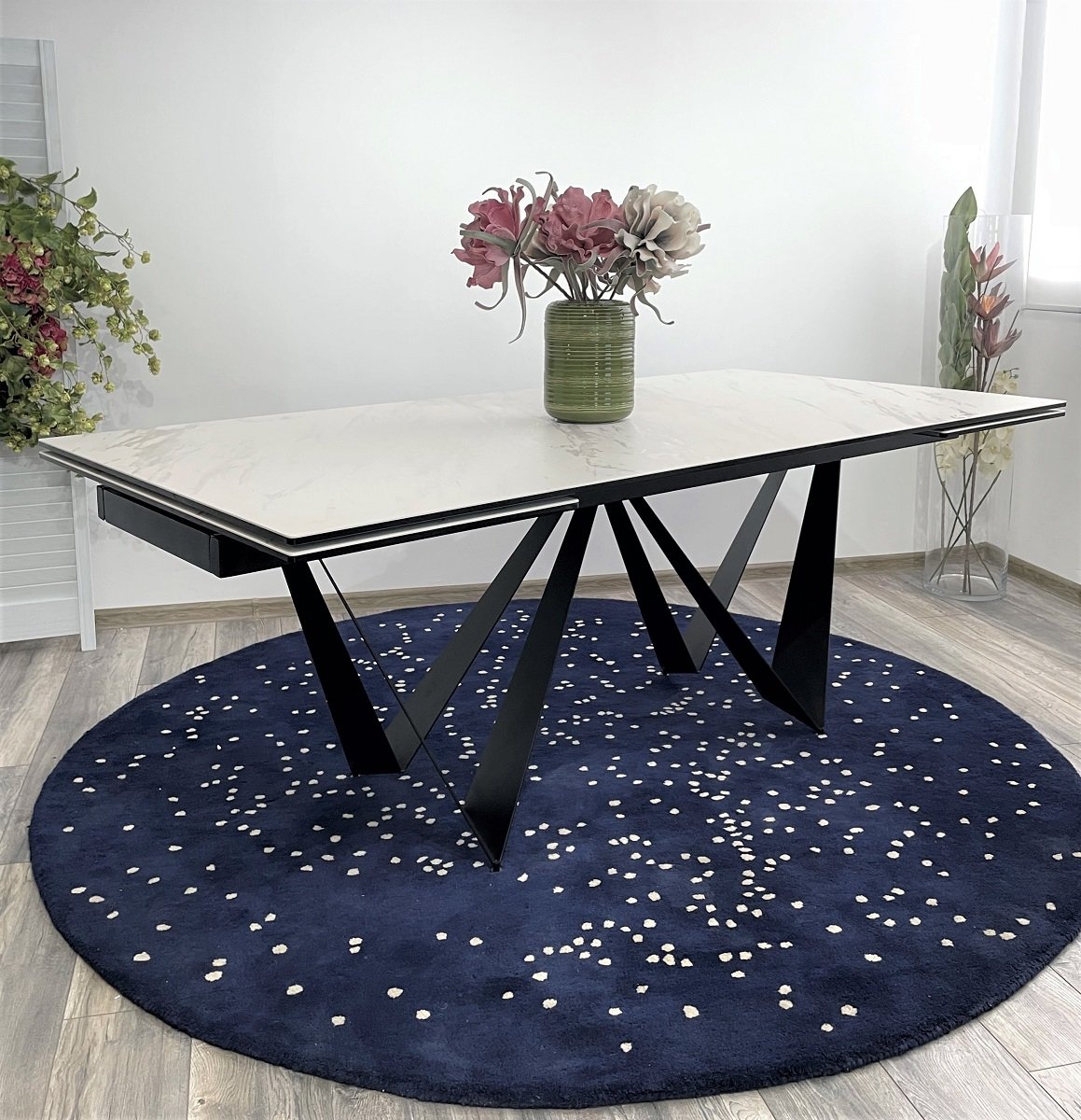 Стол RIETI 200 KL-99 Белый мрамор матовый, итальянская керамика / черный каркас М-City