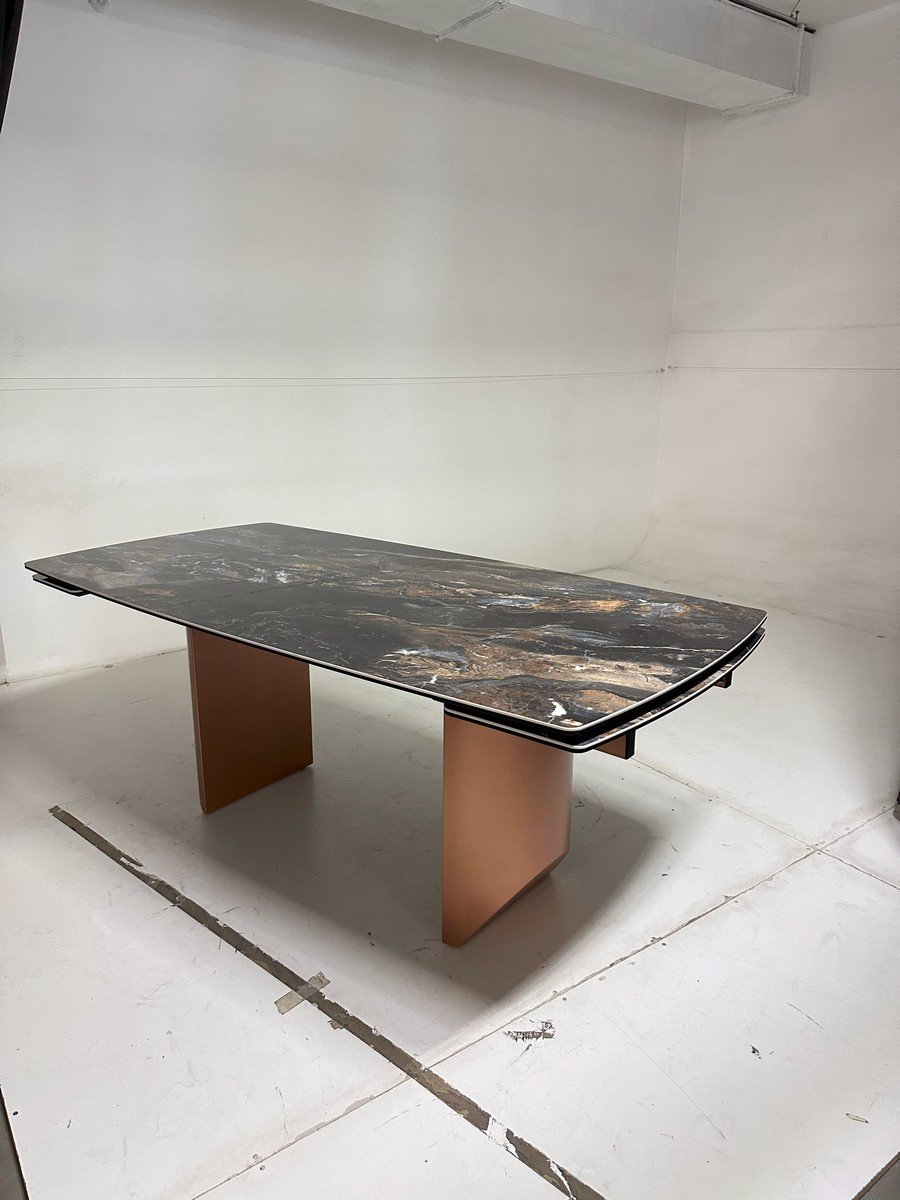 Стол ПУАНТО 200 TITANIUM LAWA NERO, керамика / МЕДЬ каркас М-City