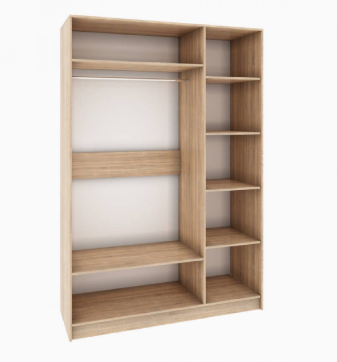 В поисках вместительного шкафа для спальни обратите внимание на трехстворчатый шкаф Мадлен. Наполнение шкафа - длинная продольная штанга и комплект полок. Всего одного такого шкафа будет достаточно, чтобы с комфортом разместить одежду на плечиках и вещи в сложенном виде. Изюминкой шкафа выступает комбинированный фасад с зеркалом, который визуально расширит Вашу комнату и позволит держать внешний вид под контролем.