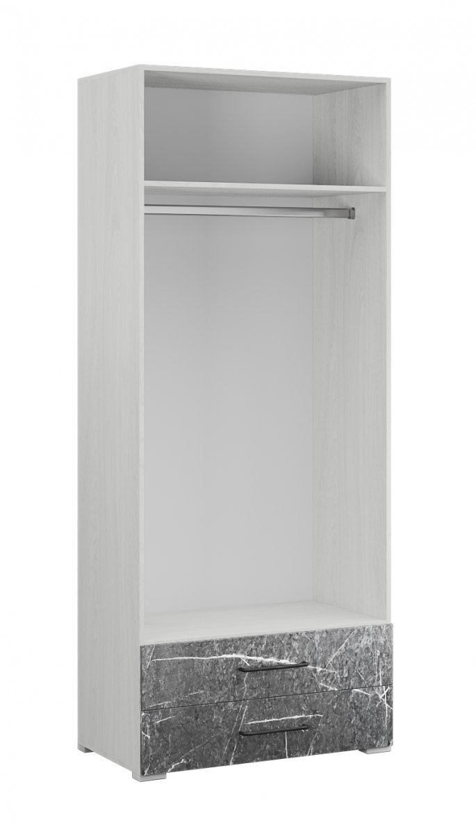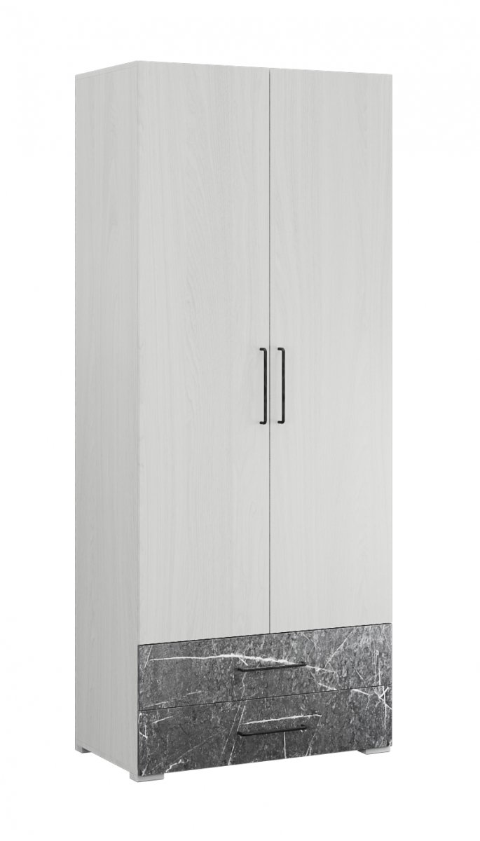 Шкаф двухдверныйТеана станет универсальным вариантом для хранения одежды, вещей в сложенном виде и белья в спальной комнате. Имеет продольную штангу для одежды на плечиках, 2 вместительных выдвижных ящика и полку-антресоль.