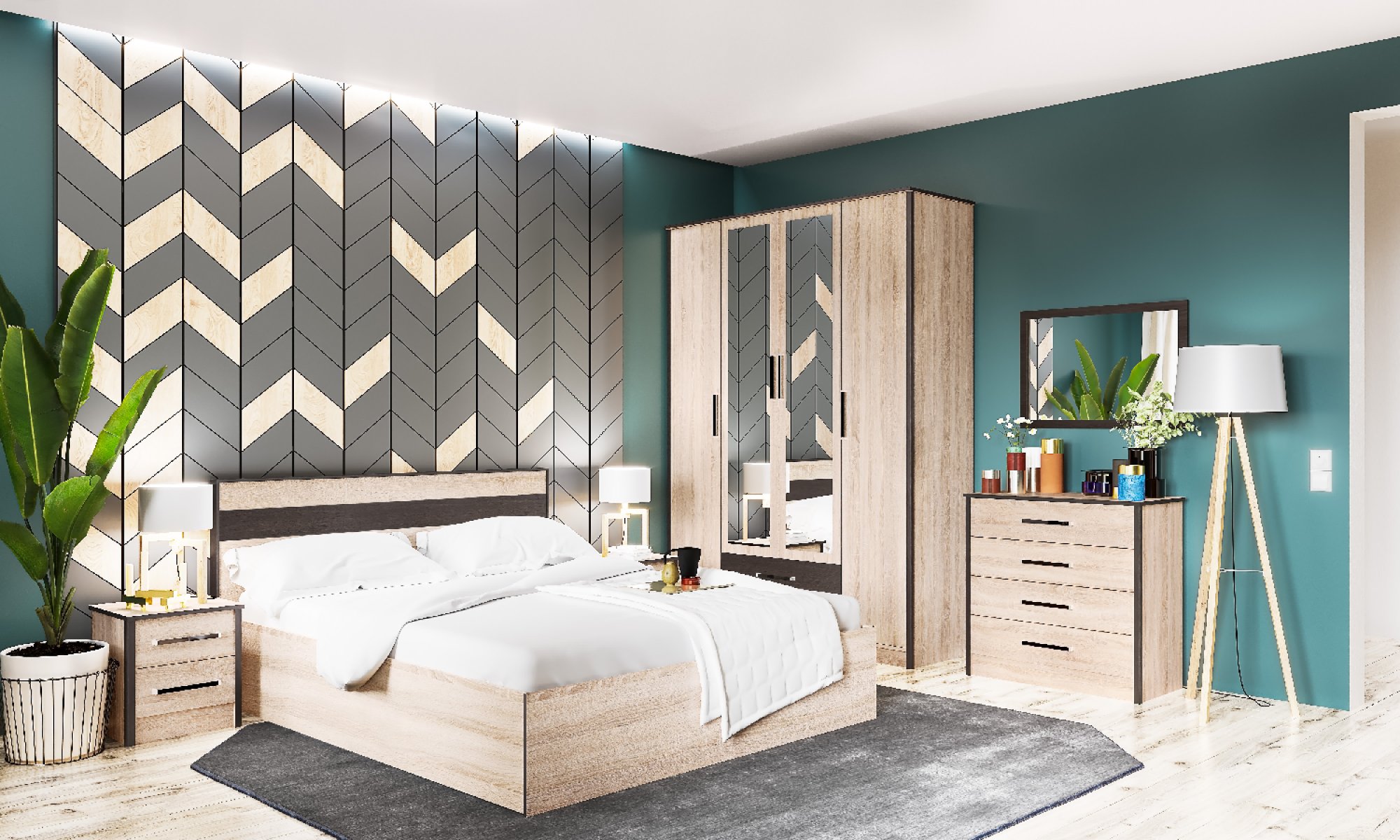 Четкие геометрические формы, отсутствие лишних декоративных элементов, никакой перегруженности деталями - все это о спальном гарнитуреЛирика. Универсальность стильной модели придает и цвет исполнения, натуральный и приятный, который подойдет к абсолютно любой комнате, и подобрать текстиль к нему не составит труда.