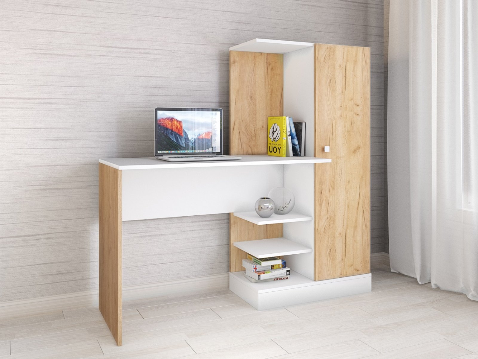 Стол компьютерный Квартет-6, белый/дуб крафт