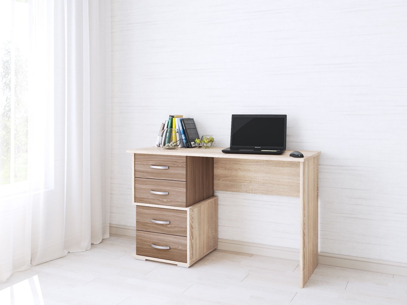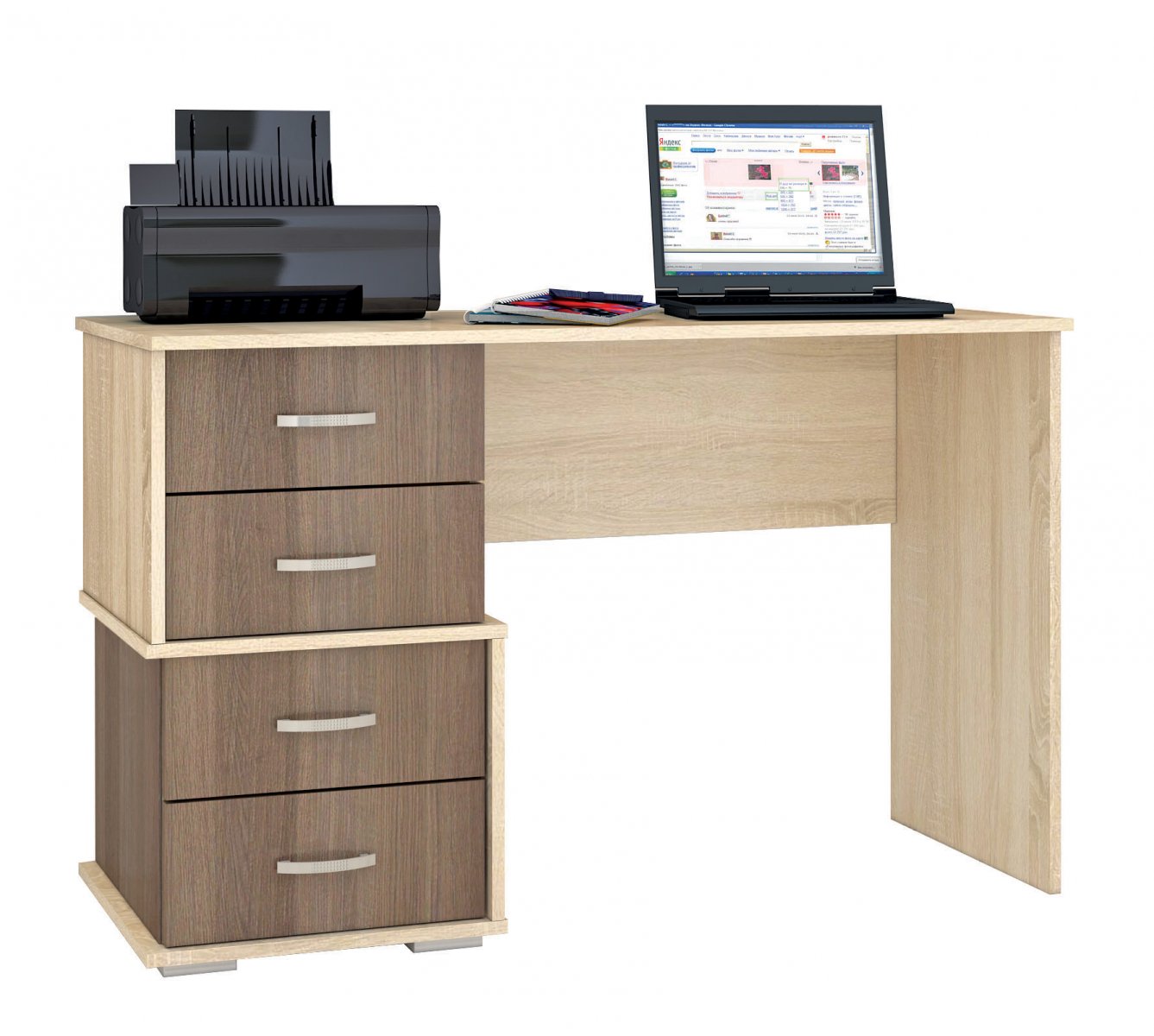 Ищете недорогой письменный стол необычной формы? Обратите внимание на модель Сити-2. Несмотря на популярный декор ясень шимо/дуб сонома, стол отличается от аналогов конструкцией встроенной тумбы с ящиками. Вы сможете организовать не только функциональное и комфортное для ежедневной работы, но и визуально привлекательное рабочее место. Четыре выдвижных ящика оснащены роликовыми направляющими.Ручки пластиковые цвета "металлик".