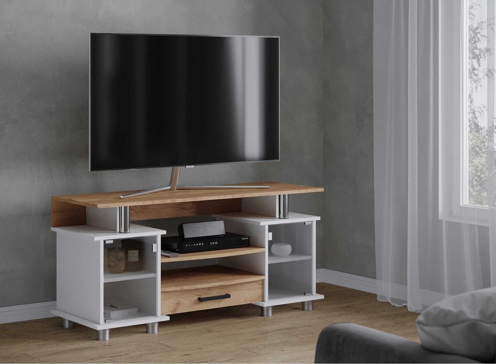 Тумба для ТВ с полками 003 (К2), дуб крафт золотой/белый