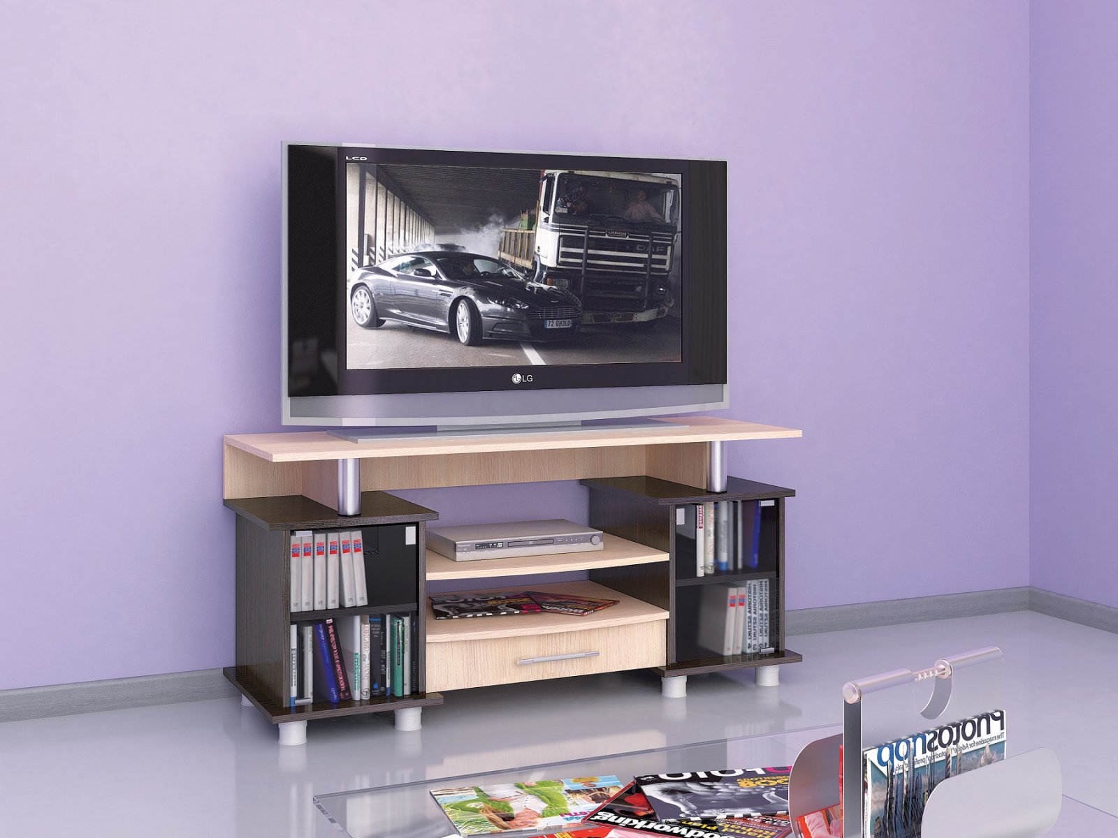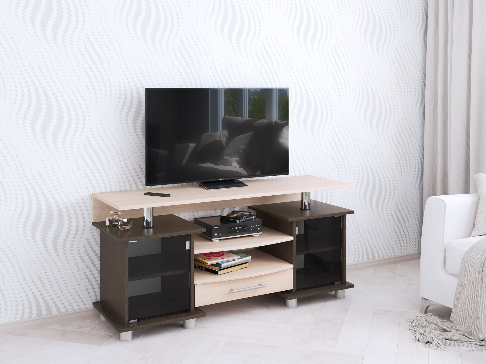 Тумба для ТВ с полками 003 К2, венге/дуб молочный